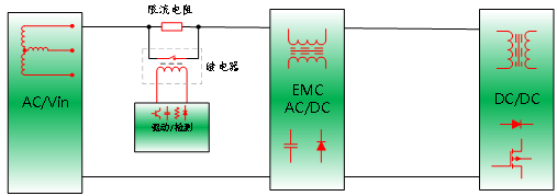 在AC电源系统设计中,浪涌电流是常见且危害较大的问题 —— 尤其AC系统供电在90°相位角时、负载带大容量滤波电容或电机负载的系统中,通电瞬间易产生正常工作数倍浪涌电流。若不抑制,可能导致熔丝熔断、整流桥损坏或电容过应力。